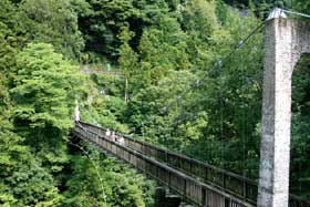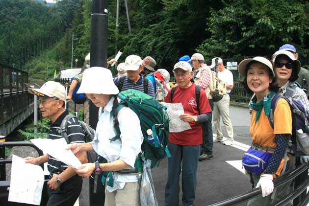 奥多摩消防署講習会に引き続き、鳩ノ巣駅までの大多摩ウォーキングを行った。昼食後の午後1時、奥多摩BCを出発しビジターセンターで一旦集合。マップなどをもらって身支度などを整えた。青梅街道からもえぎの湯に向かい、少し手前で吊り橋のもえぎ橋を渡る。20名近くが一度に渡るものだから、おおいに揺れた。橋を渡ってからもしばらく足もとが揺らいでいた。橋の上からは屏風岩あたりがよく見えた。