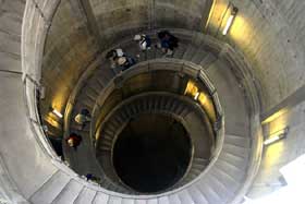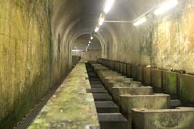 青梅街道に出て、しばらくは車に注意しながら白丸魚道を目指す。花折トンネルの手前で右への道に導かれればその入口が見えてくる。映画のセットのような螺旋階段を下ると魚道が現れる。思っていたよりもずっとスケールが大きい。こんな地下にこんな施設があるとは想像外だ。しかも、ひとつひとつの「桝」が深い。こんなところを魚が通り抜けるのだろうか。いったん外へ出ると白丸ダムは近い。ゴウゴウと排出される水の向こうに、写真で見慣れた魚道が見えた。それが折り返してダムの中に入っている。さっき見てきた魚道はその延長だった。魚道のスケールの大きさに驚く。