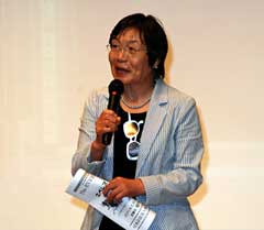 この日は、広く地域のかたがたに参加を呼びかけた。朝日、毎日、読売新聞に紹介されたこともあり、午後6時30分の開演前から多くの人たちが並び、会場はほぼ満席となる盛況。田部井淳子さんもご夫婦で駆けつけていただいた。竹中彰支部長が、東京・多摩の地に日本山岳会支部が誕生したことを報告。田部井さんは、NHK登山教室で23日をかけて北アルプスを縦走したこと、多くの人たちが登山に関心をもっていることなどを紹介、「人間の最大の特長は二本足で歩くこと。その人間だけしかできないことを山に登る人はやっている。なんと偉大なことでしょう」と話しかけた。