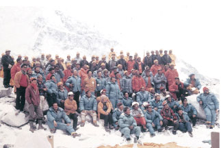 とても40年前の話とは思われなかった。まるで昨日の出来事を語るような口調だった。ベースキャンプで記念撮影した写真がプロジェクターで大きく映し出された。およそ70人の隊員・シェルパが並んでいる。これが○○隊員、これが△△隊員、これはシェルパの□□……と、紹介した。写真は、頭のなかに焼きついているのだろう。