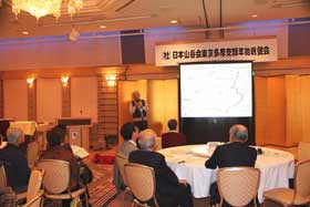 晩餐会に先立つ記念講演として、小嶋一男会員にシベリアからグリーンランドまで約2万2,000kmの冒険に挑んだ話をうかがった。講演は、広く一般のかたにも開放した。支部会員69人に加え29人の参加があり、98人が厳寒の世界に驚いたり、そこで生きる人たちの知恵に感激したり、「極北・未知への挑戦」に聴き入った。