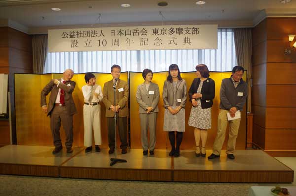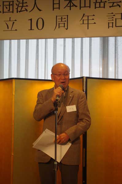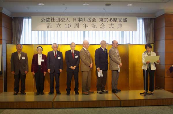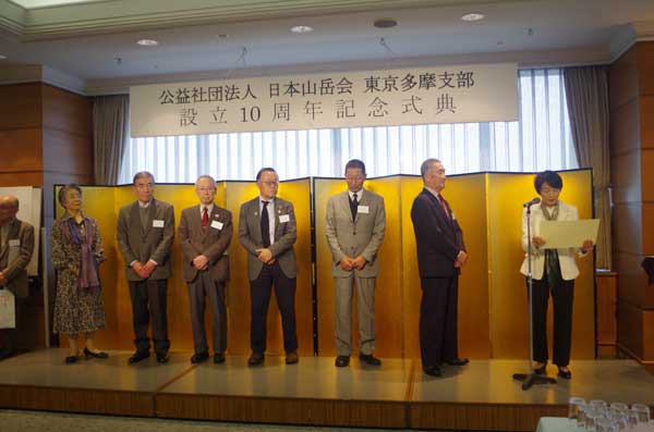 古野淳日本山岳会会長、松本敏夫埼玉支部長、込田信夫神奈川支部長のご臨席を賜り、設立10周年の祝辞をいただいた。