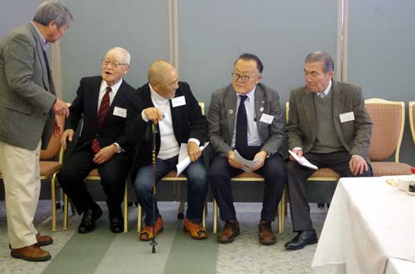 続いて支部に功績のあった13人が表彰された。支部の運営役員として尽力した7人「竹中彰氏、酒井省二氏、小川武氏、橋重之氏、富澤克禮氏、川越尚子氏、長澤登氏」に功労賞が、支部の活動に尽力した6人「神ア忠夫氏、宮崎紘一氏、木村康雄氏、城所邦夫氏、金邦夫氏、西村智磨子氏」に一般表彰が贈られ、野口支部長から各自に表彰状が手渡された。受賞者を代表して、8年間支部長を務めた竹中彰氏が挨拶をした。