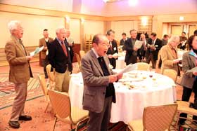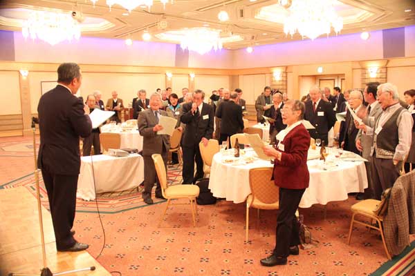 <出席新入会員>茂出木協子、新井壽一、原田嘉晏、川村光子、西谷可江、鎌田正彦、西村政晃、宇田俊二 乾杯は、出席者のなかの最長老である田邊壽会員の音頭で行った。「一生懸命、山に登ろう」と力強くグラスをかかげた。75人がこれに応え、和やかな懇談にはいった。