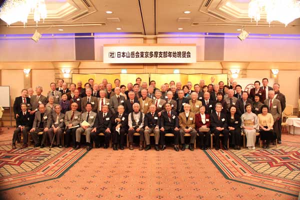 ザ・クレストホテル立川の富士の間に大きな丸いテーブルが10卓並んだ。それぞれに、おなじみの多摩の山名がつけられている。雲取山、高尾山、三頭山、陣馬山・・・・・。年始晩餐会は、山本事務局長の司会で午後6時から始まった。