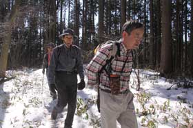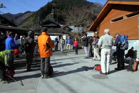 山行を2日後に控えた3月11日金曜日、午後2時46分、三陸沖を震源とするマグニチュード9.0の地震が発生し、津波や火災などで戦後最大の自然災害が宮城県はじめ太平洋側の東北地方および首都圏を襲い、多数の犠牲者が出るという大惨事が起こった。東京では震度6を記録するなど交通機関は軒並みストップし、帰宅難民が多数発生し大パニックとなった。こんな状況下で山行を実行するのはどうかと思い悩んでみたものの、直前で中止するのはかえって混乱を招くものと判断して、実施することとし当日を迎えた。やはり予想通り、一般・会員参加者とも、欠席の連絡が頻繁に入り結局会員参加19名、一般参加14名の総勢33名での開催となった。