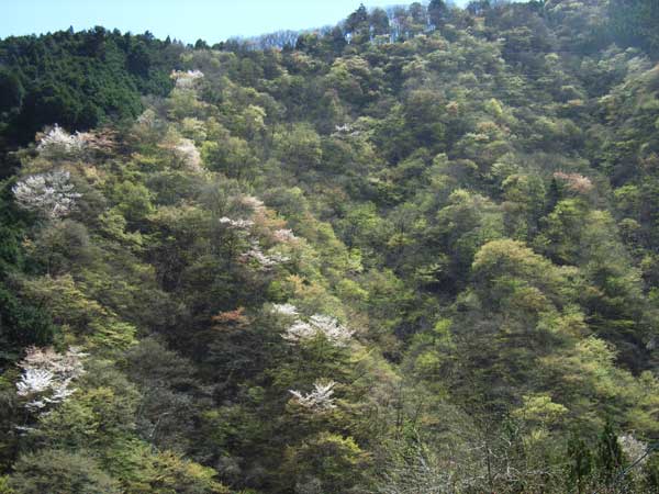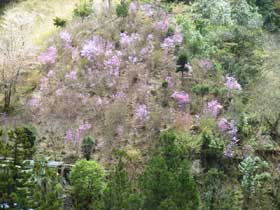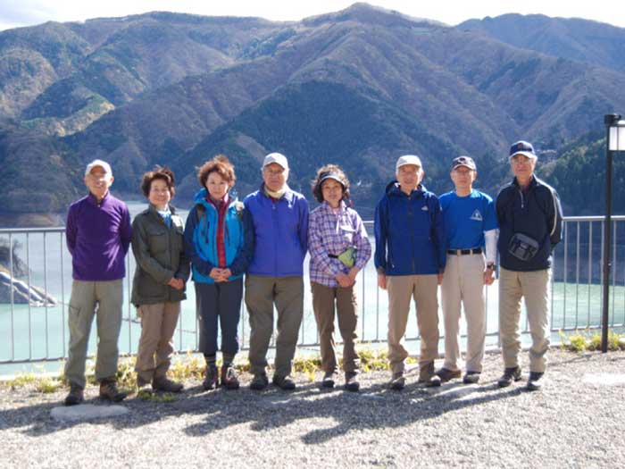 古民家近くにある奥多摩むかし道の入り口を10時前に出発した。奥多摩むかし道は奥多摩町(旧氷川村)と奥多摩湖(旧小河内村)を結ぶ旧青梅街道で、約9qの人気ハイキングコースである。コース沿道には当時の住民生活が偲ばれる多くの史蹟が随所にあり、また多摩川上流の自然がもたらす風光明媚な個所も多く、そしてこの季節はピンク色のミツバツツジ、黄色のヤマブキの花が満開で大変美しく、全く飽きる暇もなく楽しく歩くことが出来た。最後は、奥多摩湖と奥多摩の山が一望できる青目立不動堂の展望茶屋で一服し、奥多摩湖まで下ってバスでJR奥多摩駅に戻った。登山の安全を願い、奥多摩の自然と歴史を思いながら歩いた充実の一日であった。(文/石井秀典 写真/山本憲一)