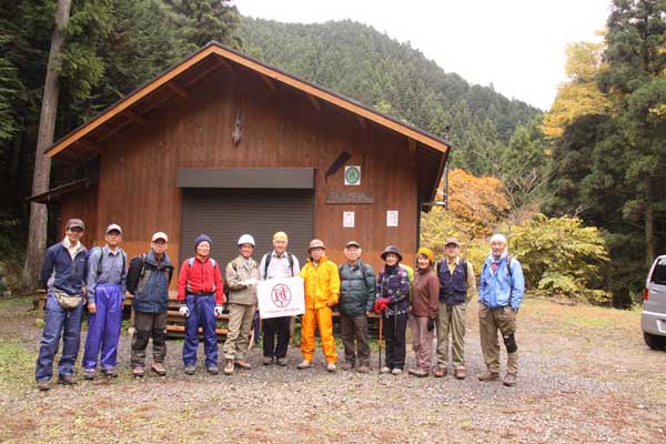 林道を30分程進むと茶色の小屋が見えてきた。ここが「高尾の森づくりの会」のベースである。