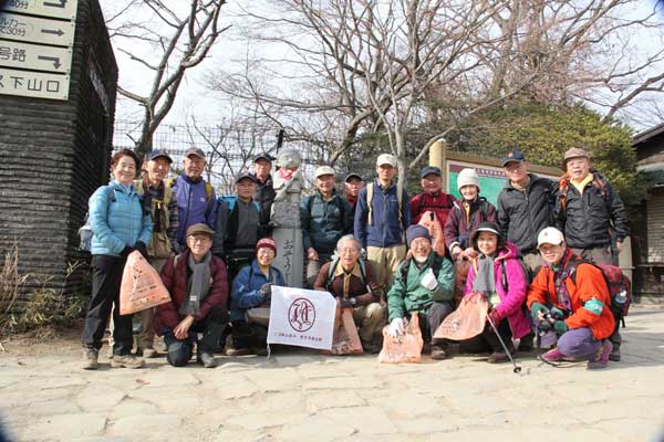 山頂直下のベンチで昼食をとり、13時05分山頂で記念撮影をしてから1号路を清掃しながら下山し、それなりの回収成果が得られたが、他の入山者に対して何らかのアピールになっていたかも知れない。「ご苦労様」との声掛けもあった。