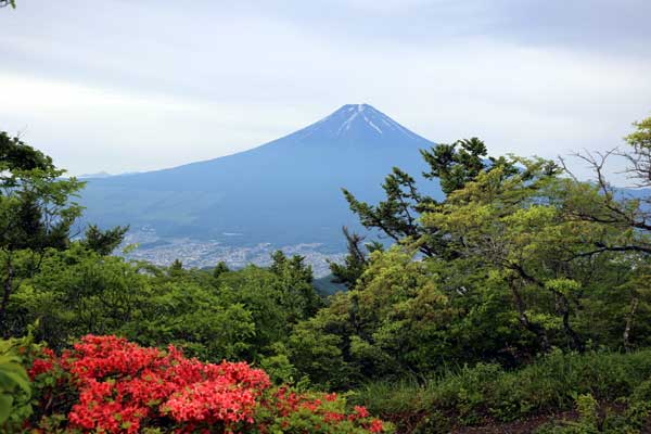 今回で3回目となるアツモリソウ保護の為の下草刈り作業。参加者は車3台に分乗し現地へ向かう。三ツ峠登山口林道駐車場からゆっくりと周囲の景色を楽しみながら登り、昼ごろ三ツ峠山荘に到着。富士山の大きく見えるテラスで昼食をすませ、1時過ぎに山荘の中村光吉さんからアツモリソウの生態やその環境、そして現状などの説明を受けて作業地に向かう。
