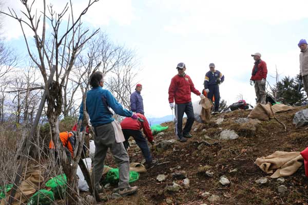 東京都レンジャーとの協働活動:七ツ石山頂ゴミ清掃活動