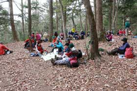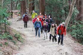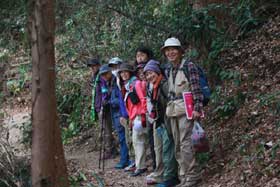 いつも通り、高尾山口駅前で受付をし、班分け、説明などの後出発した。応募者の最高齢は80才で行程のエスケープなどを配慮した。