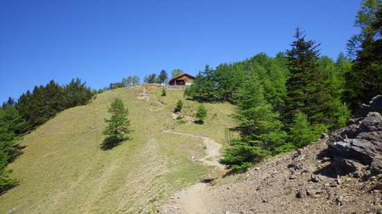 まず、避難小屋横の崩れやすい三角地帯と西側斜面に登山者が立ち入らないように、昨年までの石積みが崩れた部分にあたりの浮き石を積んでいく。次に避難小屋直下の登山道を一本化するよう石積みを補強する。