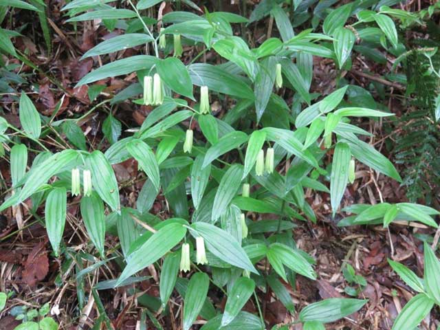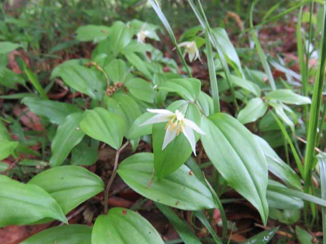 霧降の道を上がっていくと昨年の株は刈り取った後に目当てのキンラン出たばかりで小さめでしたが咲いているのを楽しめました。ナルコユリ・チゴユリ・ホウチャクソウが足元に何回も見え、違いを覚えました。ジュウニヒトエも満開でした。