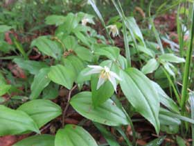 さらに京王線平山城址公園の駅に向かう道で、生い茂った笹を刈り取った後に山ウドが生えてきたと笠松さんから説明がありました。キンランも見られ貴重な1本でしたがギンランも見られました。駅から歩ける丘陵地、植生が豊かで貴重な場所を笠松さんにご案内いただき、素晴らしいキンランなどを見ることができました。昨日の雨も上がり、天候を心配しましたが、足元も歩きやすく観察できました。