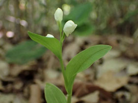 足元にはチゴユリ、ホウチャクソウ、低木のコバノガマズミ、ヤマツヅジの花、花は終盤のマルバアオダモ、アオハダ等。ムラサキシキブとヤブムラサキの葉の触感の違いを確認した。高級な楊枝に使われるクロモジは花が少し残って香りも楽しんだ。ハンショウヅルには、ワイン色の蕾がいくつかあった。下見では蕾だったが此処では一番大きいと思う絶滅危惧種のキンランが綺麗に咲いていた。栃本尾根でヒメハギを発見、ニオイタチツボスミレの香りを確かめた。ヒメコウゾなどを見ながら、日邸団地方面に下り、イチリンソウを見た。大きな住宅団地を二つ通り抜けた所に平山城址公園があり、少し入った所で小さな絶滅危惧種のギンランが咲いていた。昼食休憩はトイレとベンチがある所で、人との距離を意識して食事にした。