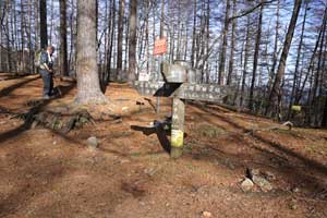 ブナ坂十字路は、七ッ石山からの石尾根の登山道、唐松谷林道(2017年7月現在、崩落のため通行止め)が合流する。これから石尾根の防火帯の広い道が延びている。