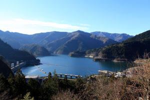 水根バス停から、水根林道への道をたどる。トオノクボまでは六ッ石山へのコースと同じで道標に従えば迷うところはない。東京都水道局の配水所で右折すると右手に奥多摩湖が一望できる。その先の青目立不動尊は道路からわずかに奥まっているが、奥多摩湖、御前山、倉戸山、七ッ石山、石尾根方面の展望が素晴らしく、ぜひ立ち寄ってみたい。