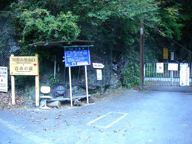 JR奥多摩駅前から西東京バスの「東日原行き」か「鍾乳洞行き」(日曜のみ)に乗り、15分ほどの川乗橋バス停で降りる。バス道の横を流れる日原川に注ぎ込んでいるのが川乗谷だ。林道入り口にある鉄柵のすき間から林道へ入り、身支度を調えて歩き始めよう。川乗谷が深くえぐった渓谷を右下に見ながら歩くと、ほどなく左の斜面に蕎麦粒山への登山道入り口がある。さらに林道を30分ほど歩いた標高570m付近のカーブミラーのところには、沢登りの人気コース逆川(さかさがわ)入渓点への下降口があ