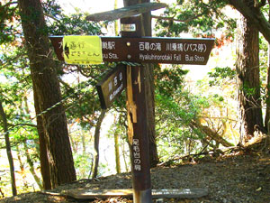 登山道に戻り、途中の分岐で「古里駅」への道標に従い右の道をとる。この道はズマド山北峰(721m)の西側を巻いていて、急な斜面をトラバースしているので足元がとても悪く、慎重に進みたい。やっと尾根道に戻り、植林帯の中を古里駅への道標に従って行けば、やがて古里の町並が見えてくる。親切な道標がJR古里駅へと導いてくれる。