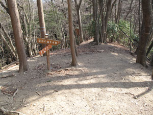 この分岐あたりが殿上山(でんじょうさん/1,011m)だが,ピークも定かではなく山名表示もない。