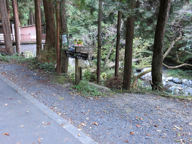 JR青梅線川井駅近くのバス停からの便は本数も少ないので調べてから計画しよう。特に、最奥の清東橋バス停までは注意が必要である。清東橋バス停には休憩所がある。ここからは、大丹波川沿いの舗装道路を百軒茶屋経由で奥茶屋まで行き、道標に従い右に分かれ大丹波川の橋を渡り、ゴンジリ沢沿いの登山道に入る。沢沿いにはワサビ田がよく手入れされており、山ノ神の祠まで続いている。山ノ神までは、ゴンジリ沢を何回か橋で渡る。