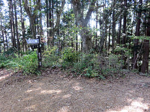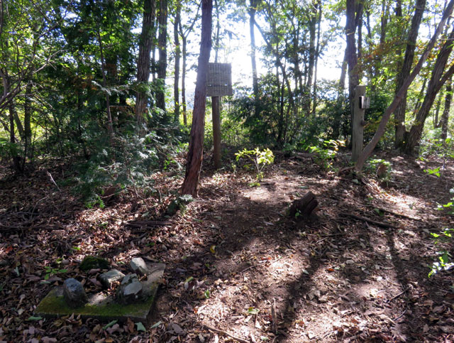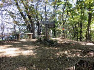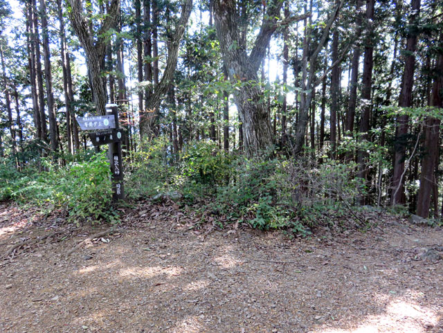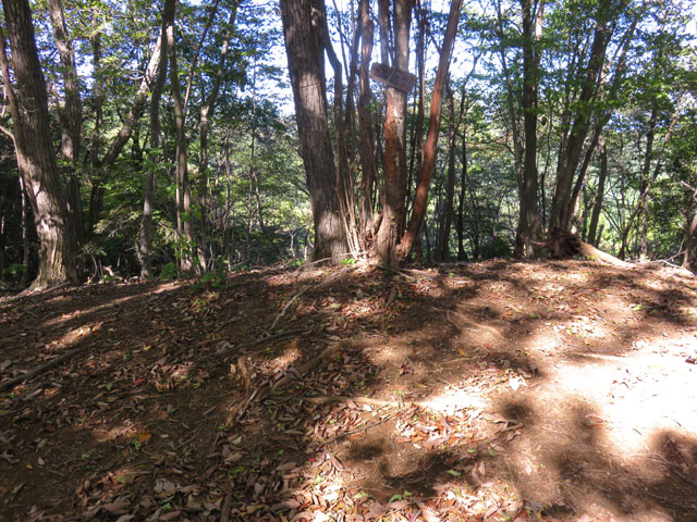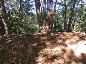 黒山から東に走る小沢峠への尾根と分かれ、東南の尾根を行く。小ピークを4つほど越えると基準点のある雑木に囲まれた逆川ノ丸(さかがわのまる/841m、常磐ノ前山)に着く。