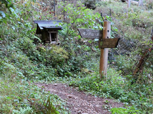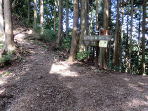 登山道に戻り、さらに三段の急な登りを過ぎ、急な下りで名坂峠に着く。この峠で升の滝・上成木バス停、大丹波・川井駅及び岩茸石山・惣岳山方面に分かれる。体力に余力のある人は、岩茸石山・惣岳山経由で御嶽駅に下れば、さらに充実した山行になるだろう。
