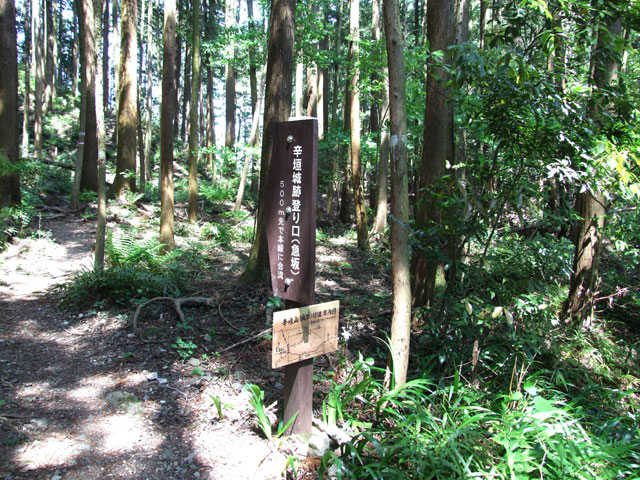 コースをさらに下ると、辛垣山・辛垣城跡へ行く道と巻道の分岐点に出る。