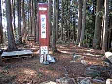 いったん下った後、三方山に登る。巻道分岐の道標から、ほんのわずかで山頂に着く。このコースで唯一、二等三角点がある。展望のない山頂だが、もっと知られていい山だ。近くの樹木に「ここは、かつては石神入り山と称された」との紙が以前は貼ってあった。
