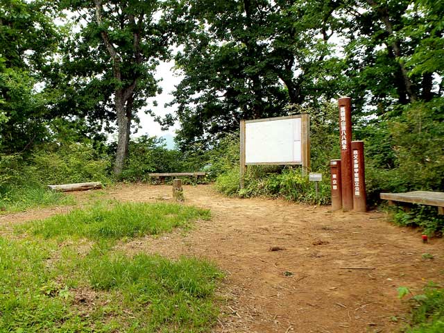鶴脚山からはしばらく綺麗な広い尾根道で木漏れ日が心地よい。道の脇の林床にイチヤクソウが2、3カ所まとまって咲いているところがあって、ほっとした頃に100段もありそうな長い木の階段の下りに出る。そこを下ると今度は、木々に囲まれて緩やかだが、なかなかハードな登りになって、やっと登りきると馬頭刈山の山頂に出る。途中に泉沢尾根への分岐がある。山頂は広くて整備され、ベンチが2つある。三等三角点があり、近くに「関東の富士見百景」の銘板が立つ。北西に見える大岳山の姿は美しい。標識に「馬頭刈山頂八八四米・秩父多摩甲斐国立公園」とある。