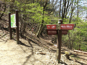 車やバイクが勢いよく走る奥多摩周遊道路を注意して横断し、駐車場の背後にある風張峠に上がる。いかにも風が通り抜けそうな感じがする細い尾根道の峠だ。都民の森へと歩き、鞘口峠から駐車場へと至る。小河内、風張、鞘口の三峠は檜原村と旧小河内村を結ぶ交易路だったが、なかでも倉掛尾根は緩やかで、より多く使われていた。