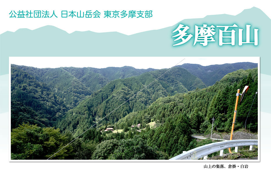 北秋川の最奥、源流付近にはいくつかの集落がある。茗荷平は檜原城主、平山氏重の子・氏久が追手から逃れ、その子孫が開拓した。北は小河内峠を経て御前山登山口にもなっている。かつての猟場で鉄砲の名手も多かった。昭和20年代まではランプの生活だったそうだ。白岩も西方に延びた倉掛尾根にある山上集落のひとつである。それら集落を抜けて倉掛山を訪ね、風張峠までの尾根を歩く。