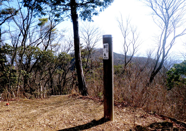 合流点から尾根を300mほど進むと、分岐に差し掛かる。急な傾斜に付けられた木段を上がって行くと、わずか20坪ほどのピークが現れる。茅丸の頂上だ。『新編相模国風土記稿』によると、日本武尊が東征の折、大麻を奉納し朝敵退治の祈願をしたという言い伝えのある山だ。小休止して二千年前の武尊の軍勢に思いを馳せる。東側の急な木段を下ると、南側を巻く道と合流する。しばらく平坦な道となり、少し開けた台地を抜けると長い木段が見えてくる。なだらかな斜面に付けられた木段の先に小さなコルがあり、それを抜けた先に連行峰がある。