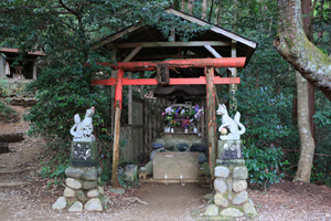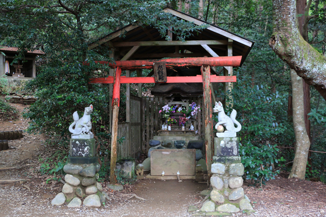 ケーブル清滝駅の横を流れる川に掛かる橋のたもとに「稲荷山コース登山口」の案内板が立っている。いきなり急な階段の上り。10分ほどで小さな「旭稲荷」の前に出る。