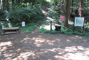 JR八王子駅北口始発のバスか、JR高尾駅からのタクシーを利用して「大垂水」で降りる。進行方向に5分足らず歩くと大垂水峠で、頭上に歩道橋が掛かる。ここが登山口で橋を渡った案内板に草戸山の名前が見える。
