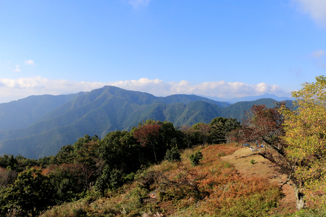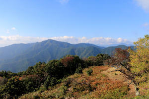 そこから10分ほどで現在の明王峠に着く。茶屋の裏に不道明王が祀られているから「みょうおう」峠で、「めいおう」峠ではない。丹沢や富士山の展望が開け、多くのハイカーが休憩したり、食事をとったりしている。春はサクラが美しい。茶屋は週末休日だけ営業している。昔は「明王ドッケ」と呼ばれていたらしい。峠から1時間半ほどで与瀬神社、相模湖に下ることができ、縦走路を10分ほど歩けば、もうひとつの峠、奈良子峠(ならことうげ/730m)に出合う。