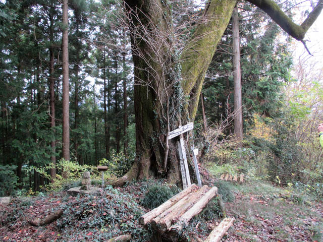 馬引沢峠から約800mで旧二ッ塚峠に着く。悲しい母娘の伝説を秘めたふたつの塚があり、一方にはサクラの木が立っている。