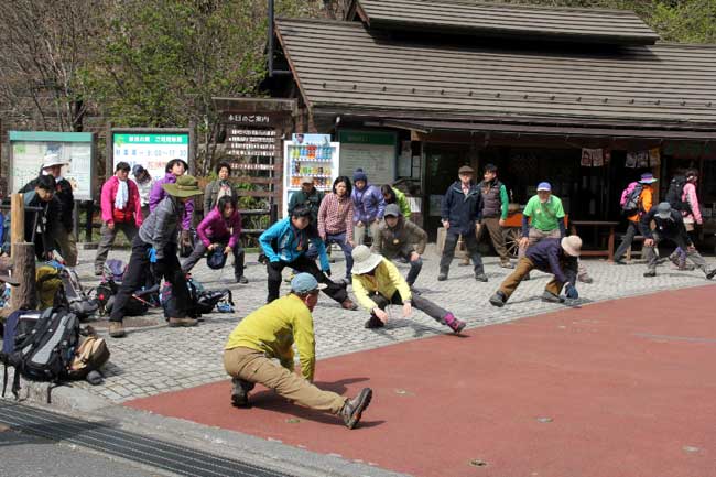 今年の登山教室は「若い人向け」というフレーズを加えて募集した。そのせいもあってか、受講生27名の平均年齢は約41歳。最年少は25歳とグンと若返った。集合場所に集まった受講生が生き生きと見えるのは気のせいではないようだ。