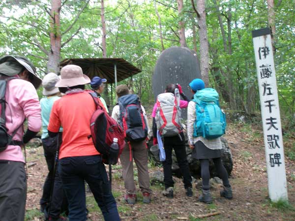 今回もチャーターバスを利用することになり、予定通りに立川を出発、車中では城所講師による「山の天気」の講習をうける。時期的に夏山の最盛期であり、今回の目標の1つである「夏山歩きの危険管理」にも掲げられた『雷対策』を含めた広範囲のお話を聞くことができた。大型バスが駐車できるスペースのある「プール平」(親湯温泉入口の1つ手前のバス停)で下車し、ミーティングと準備体操後に出発。