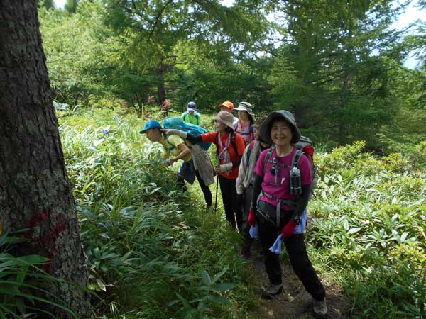 陽射しがそれほど強くなく、湿度も低かったので、夏山特有の日照りに遭わず、また気になっていた雷の心配もなく、実に快適な一日であった。「夏山とはこんな楽なのだ」と思われても困るが、楽しみを十分に味わってもらえ、初級登山教室の第一回目としては満足してもらえたのではないかと思う。