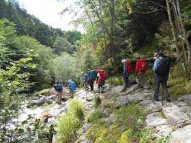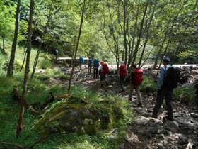 11:40赤岳鉱泉(昼食)12:50→13:55堰堤広場14:05→14:45美濃戸山荘15:00→