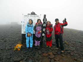 ガスがかかる硫黄岳山頂にて