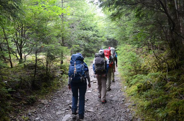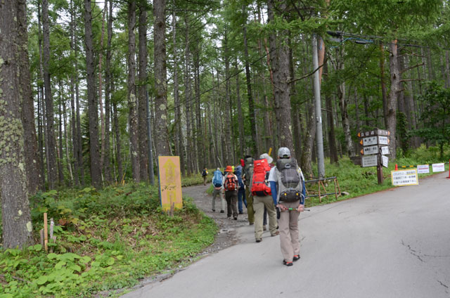 一週間前から台風15号の動きが気になっていたが何とか東海上にそれつつあったので山行を決行することにした。立川北口集合時はやはり雨が降っていた。小仏トンネルを過ぎる辺りで雨も止むが南ア、八ヶ岳には低く雲がかかっている。美濃戸口にはほぼ予定通り到着。今回の山行では、受講生に山行記録提出の宿題がある。曇り空で林道歩きには暑くなく歩き易い。美濃戸山荘にて昼食。更に林道を歩き堰堤広場に到着。ここからは北沢沿いの登山道を快適に歩く。