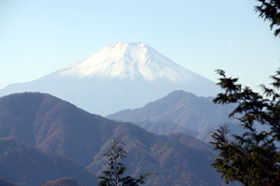 急な斜面を登り尾根に取りつく。青空がどんどん広がってくる。富士山展望の期待が膨らむ。間伐が進んだ仙人小屋跡で休息し、高畑山への急な尾根を一気に登る。先行の班から歓声が上がり、富士山の展望が良好なことを知り、歩が進む。頂上に飛び出した途端、雪を被った富士山に歓声が上がる。5期の受講生は天候に恵まれた山行が多い。きっと晴れ男・女が多いせいであろう。
