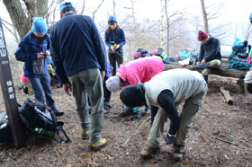 乗車予定のバスの発車時間に間に合わないと1時間半、待たなければならない状況の中、ここでも受講生は班リーダーの速度に見事に合わせて下っていく。発車時間の25分前に到着できた。ここで終了ミーティング、次回陣馬山とアイゼン歩行の注意点を説明して、時刻通りやってきた増便バスに乗車し武蔵五日市駅に向かい解散とした。