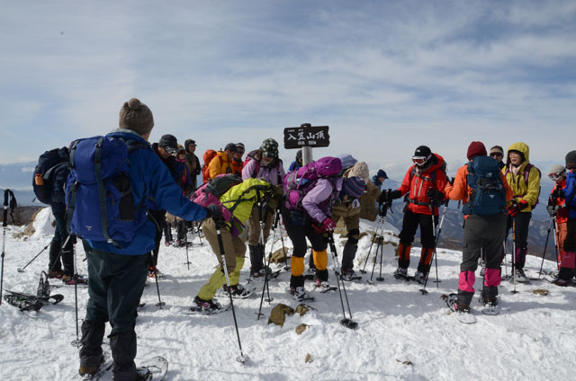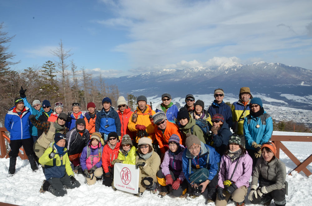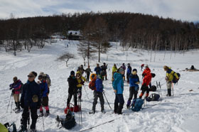 後はゴンドラ頂上駅に向け登りを順調にこなし、無事頂上駅に到着した。再度、記念撮影後ゴンドラで山麓駅に下りる。予定より早くバスが出発できた。帰りも道路は順調で立川には17時に到着した。今回はスノーシュー歩行に慣れてもらったが、楽しい山行に親しんでいただけた。第5期初級登山教室も、後は雲取山の修了登山を残すのみとなった。受講生も2年間の経験で驚くほど成長したと感じた。