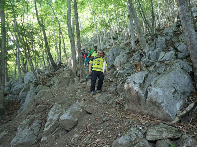 ミズナラの巨木が目印の分岐では一石山経由で一石神社へ下るルートを選択した。ここで進行方向を誤り東に進んでしまったが、すぐに気付いて南に進路を変えてリカバーした。