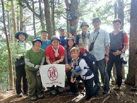 バス停到着後準備体操、リーダー、講師のお話後2チーム分かれて出発した。 予報より天候の回復が早く、雨具を付けずに歩けそうな予感に少しだけ気持ちが軽くなる。バス停到着後準備体操、リーダー、講師のお話後2チームに分かれて出発した。車道を1時間ほど歩行、途中稲村岩を左手に臨み登山口に到着、登り始める。