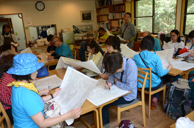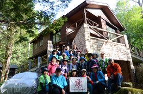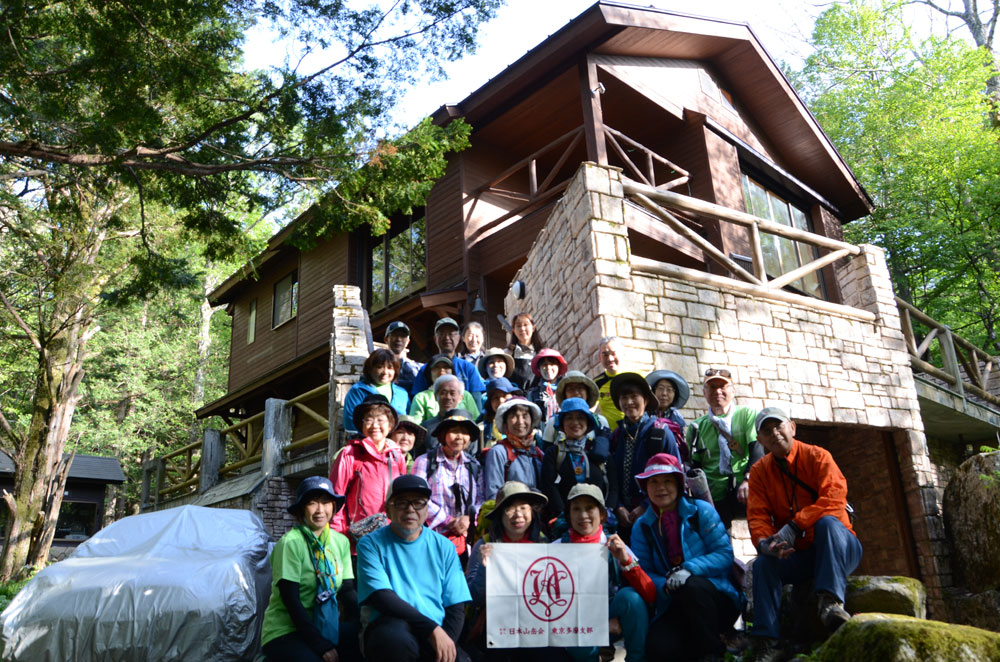 朝から大気はやや蒸す感じで少し暑さを覚えたが、予報では好天に恵まれるとのこと。今回は初の宿泊を伴う山行である。受講生の中には上高地の自然に浸ってみたいと参加を決めた人もいて14名となった。スタッフもサポート体制を厚くする趣旨で12名が参加し総勢26名で立川を出発した。途中で少し渋滞に巻き込まれたものの、大きな影響はなく松本ICを降り、買い出しのためスーパーに立ち寄る。ほぼ計画通りの時間に上高地BTに到着し山研に向かう。昼食後、管理人の元川さんに山研利用の際の注意点の説明の後、上高地ビジターセンターに勤めていた経験を生かして上高地の魅力について語っていただいた。山岳雑誌「山と渓谷」5月号に元川さんのインタービュー記事が掲載されていたこともあり、受講生も熱心に耳を傾けていた。その後総括リーダーの宮崎さんから上高地の地図読みの講座を聞いて、ミニ水力発電所に場所を変えて説明を受ける。